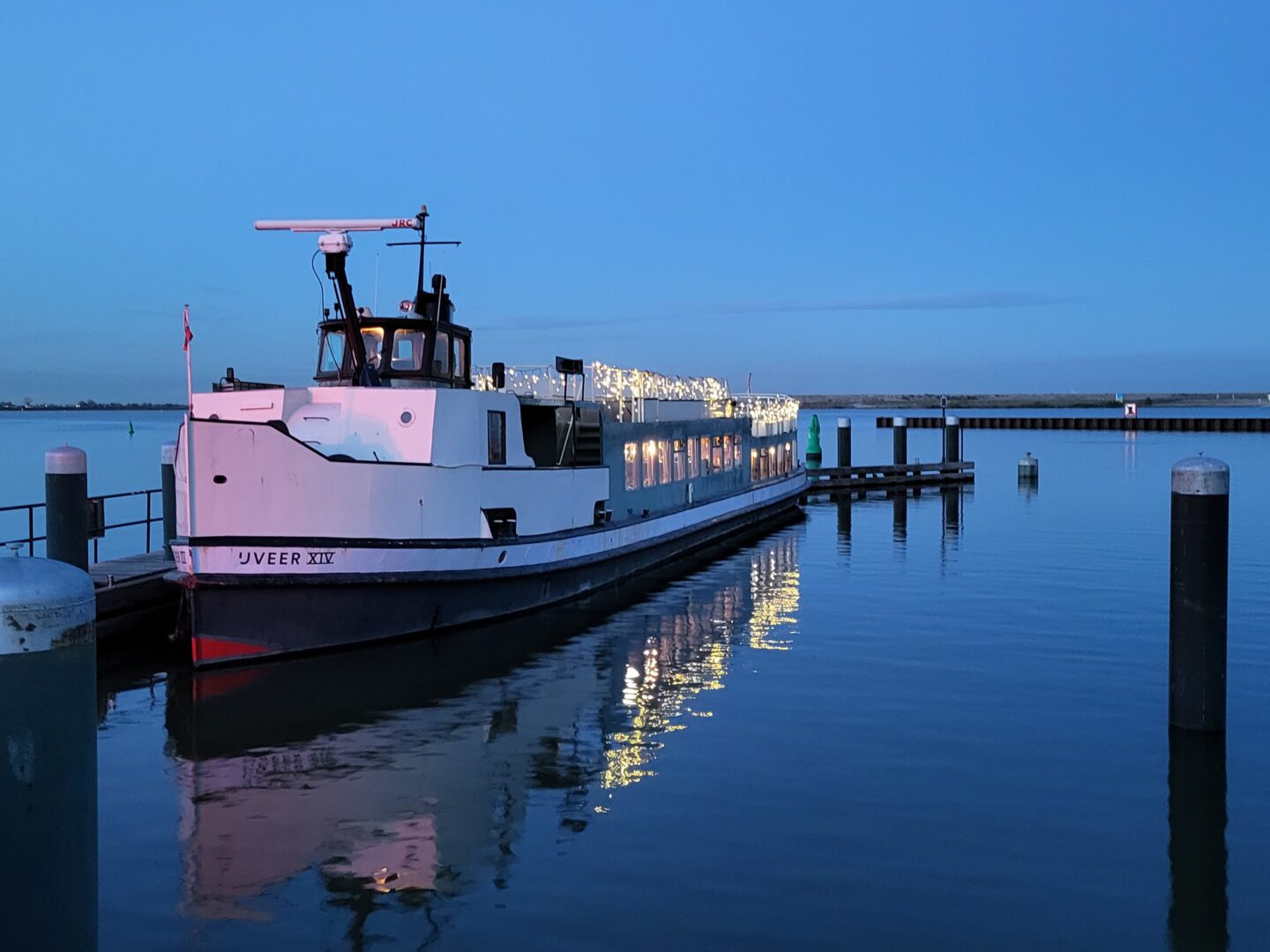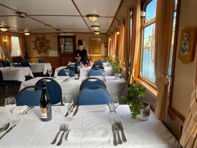 In de jaren ’80 is het schip extra verlengd. Daardoor is er meer binnen- en buitenruimte dan oorspronkelijk, wat haar flinke capaciteit geeft voor feesten, transfers en evenementen. Samen met het open bovendek en de brede trappen zorgt dat voor een prettige en overzichtelijke indeling, waarbij gasten zich makkelijk over het schip kunnen bewegen.